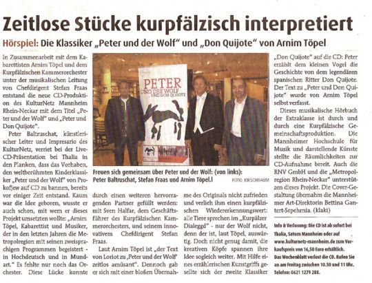 Peter & der Wolf und Peter & Don Quijote mit Arnim Töpel und dem Kurpfälzischen Kammerorchester / DVD-Produktion